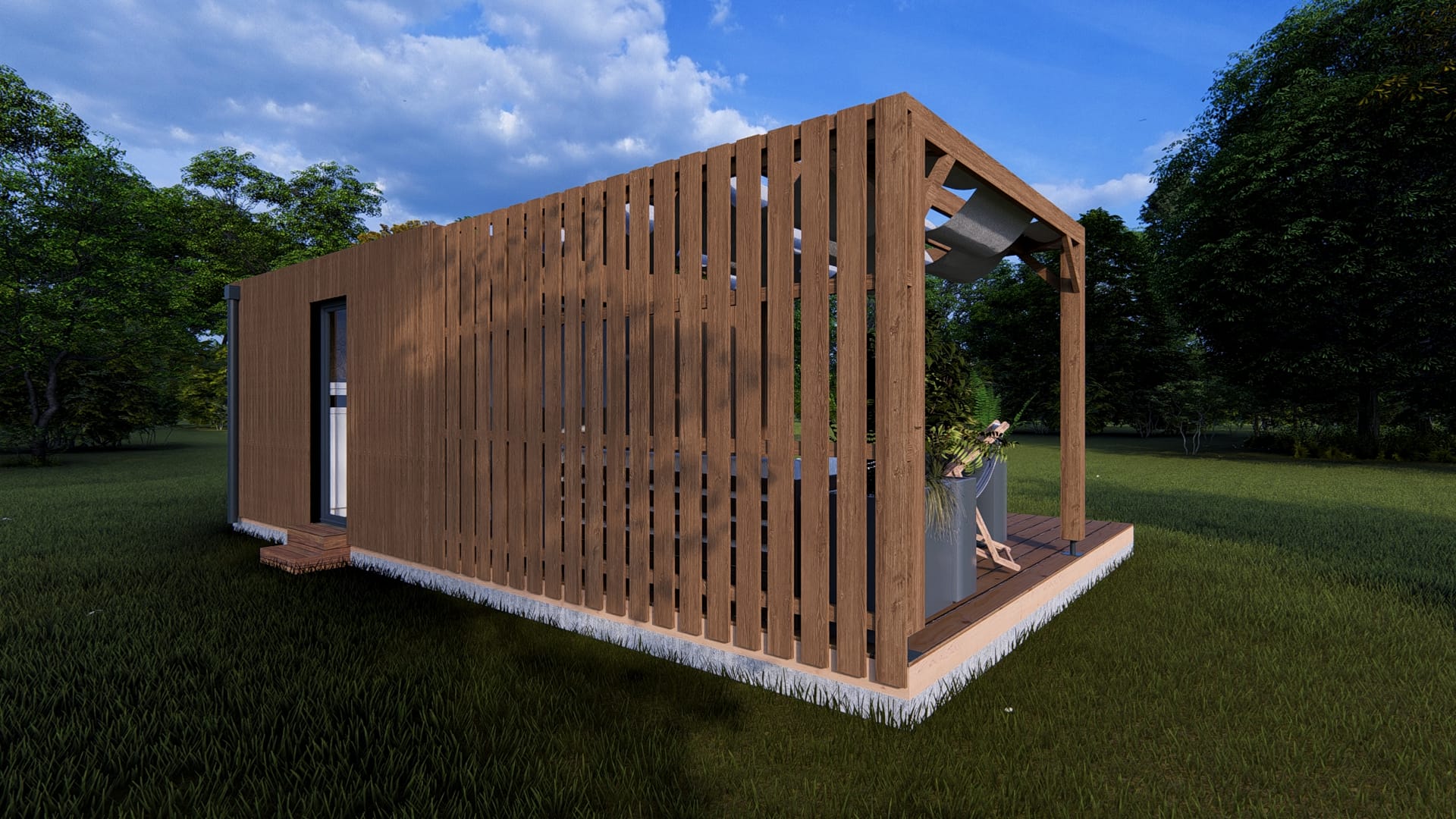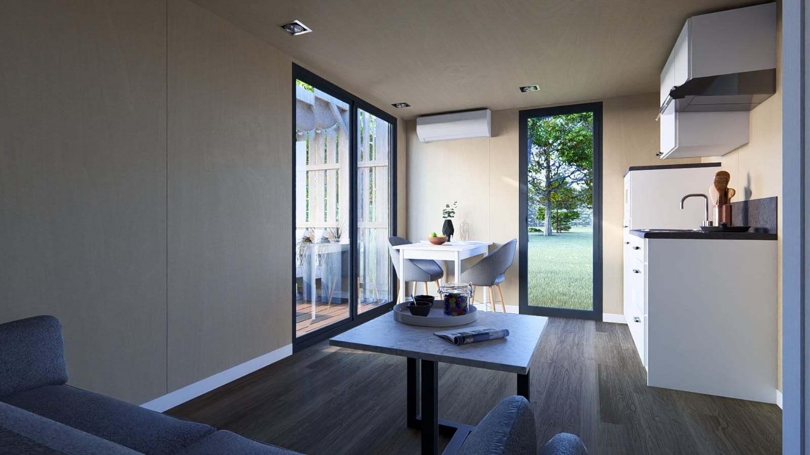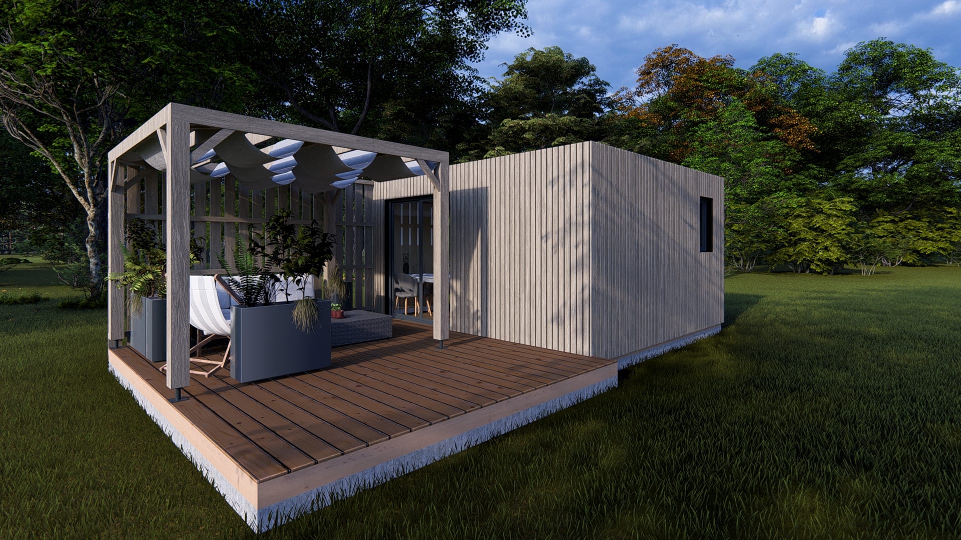 Par ailleurs, nos habitats se distinguent par leur flexibilité, leur rapidité d’installation, leur évolutivité dans le temps et l’espace et leur impact écologique par rapport aux structures en béton.