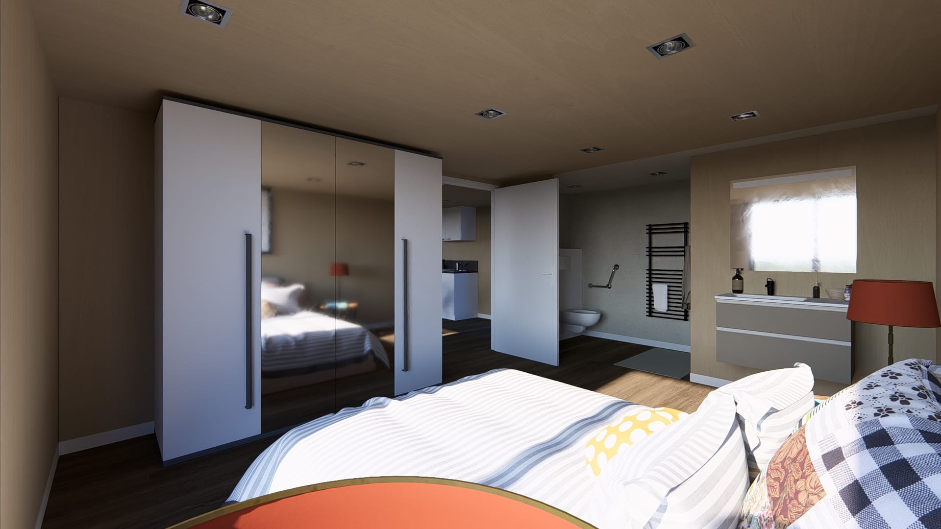 Par ailleurs, nos habitats se distinguent par leur flexibilité, leur rapidité d’installation, leur évolutivité dans le temps et l’espace et leur impact écologique par rapport aux structures en béton.